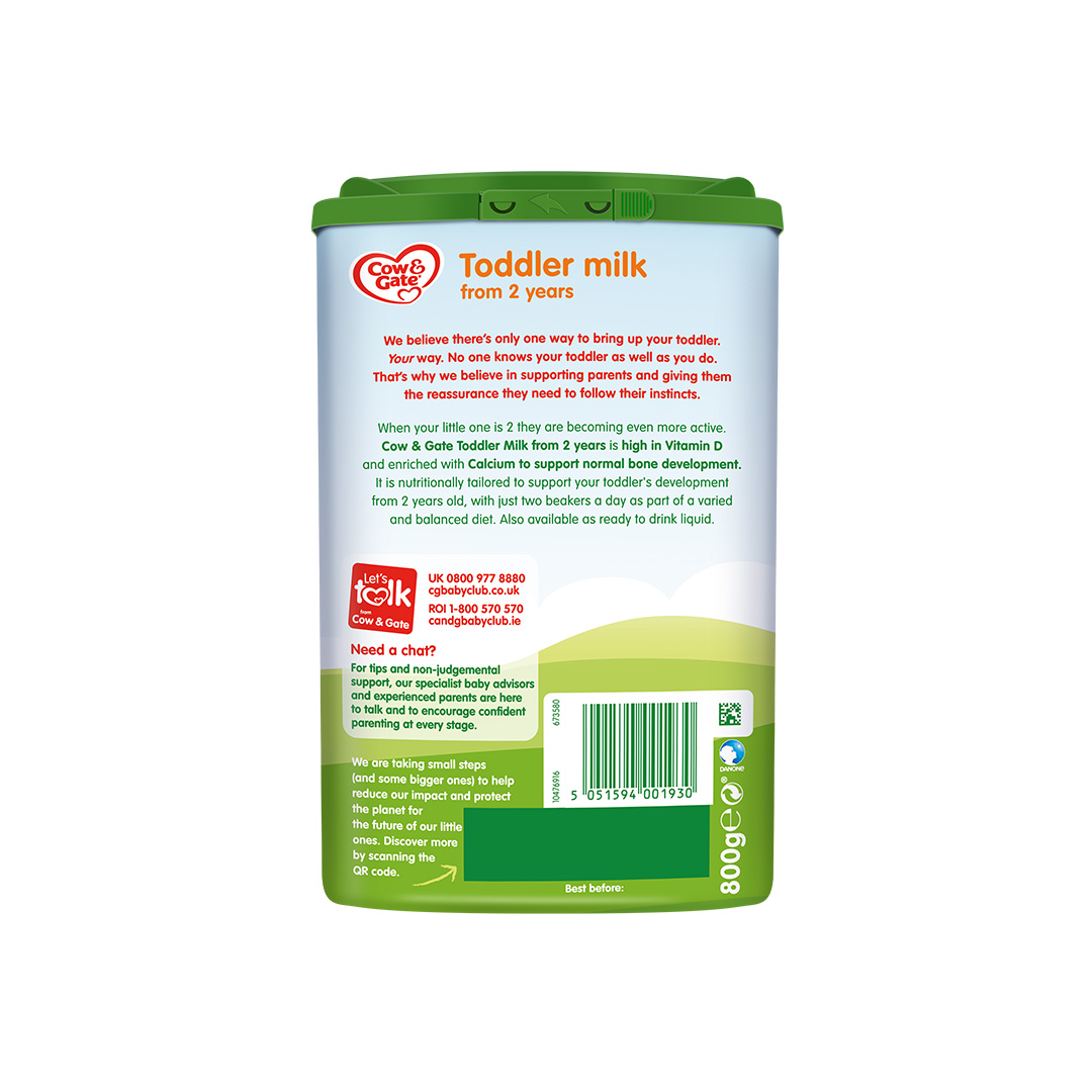 Cow & Gate 4 Growing Up Milk is carefully formulated with a slightly more nutritious semi-skimmed version for older toddlers aged 2 or above as they continue to grow and develop during this active stage. This Stage-4 formula is great for toddlers as they begin to grow more independently by getting proper nutritions. It provides DHA (Omega-3), an important ingredient for brain and vision development. It also contains a higher level of vital vitamins and minerals that support growing bones and energy needs during this critical stage. Cow & Gate has been a trusted name in baby care for centuries, where 97% parents agree their baby is settled when drinking Cow & Gate growing-up milk.