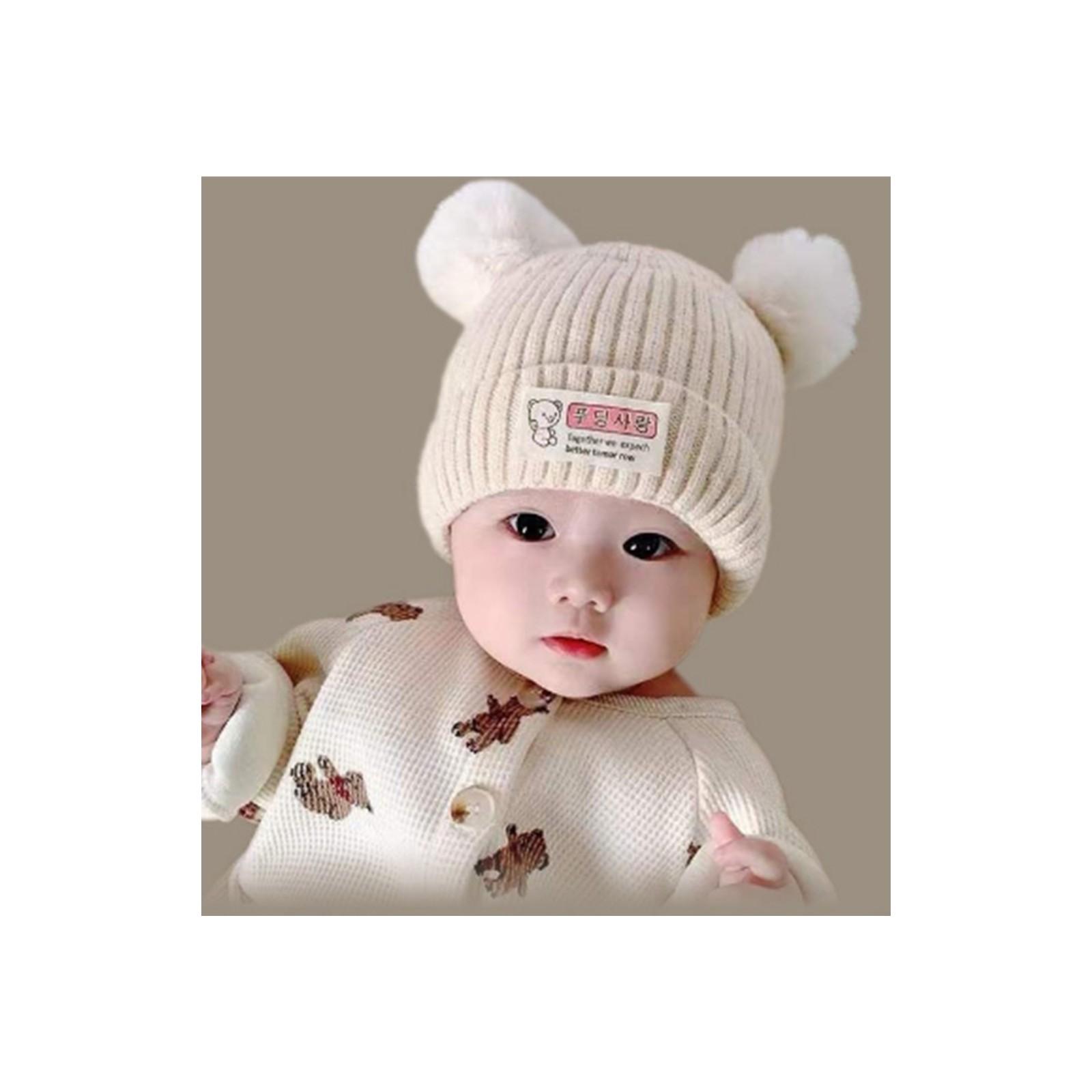 Keep your little one warm and stylish with this adorable knit baby beanie, featuring a double pom-pom design for added cuteness. Made from soft, stretchable knit fabric, this hat provides both warmth and comfort, making it perfect for chilly days. The neutral beige color is easy to match with any outfit, while the double pom-poms add a playful touch that’s hard to resist. Ideal for babies and toddlers, this cozy beanie is a must-have winter accessory and makes a delightful gift for new parents.