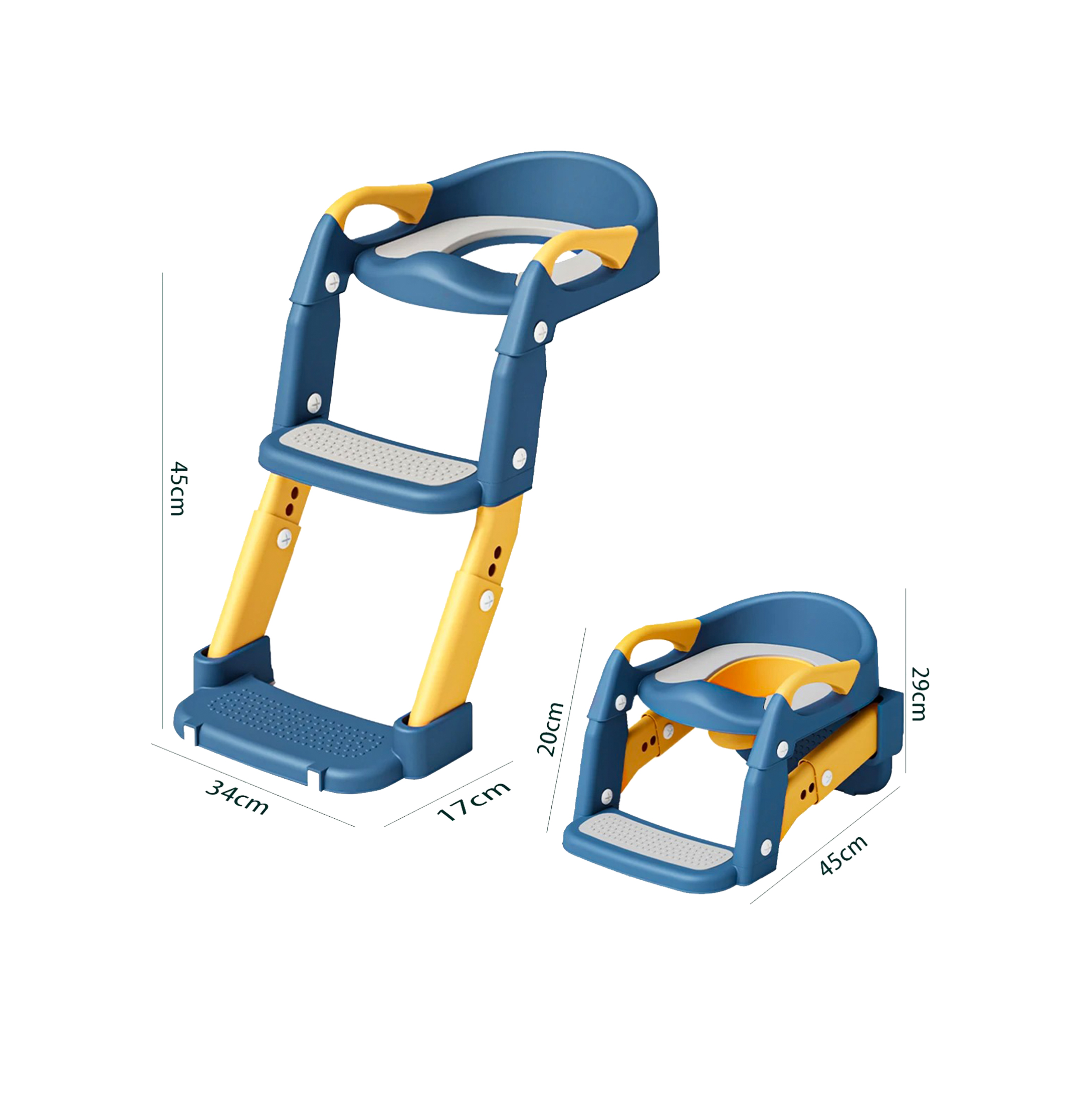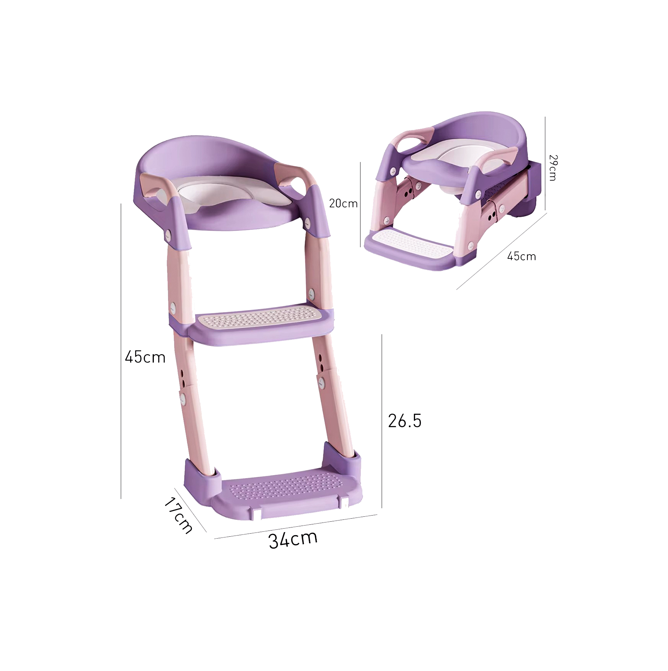 The sturdy structure with non-slip foot pads, enlarged handrails, and a wide pedal provides extra safety while climbing up or down. Its foldable and lightweight design makes it easy to move, store, and even use as a regular toilet seat when folded.