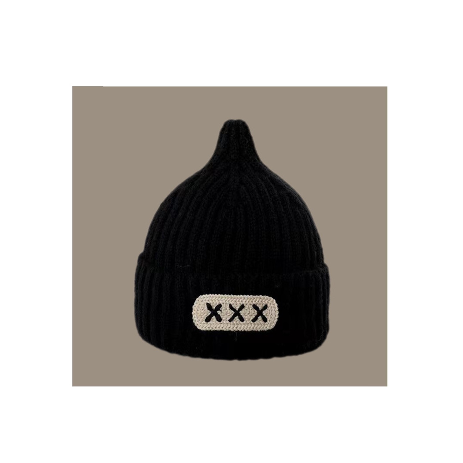 Trendy Black Knit Baby Beanie with “XXX” Patch